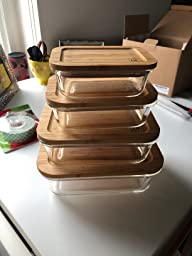 DE Plastic-Free Glass Food Storage Containers with Eco-Friendly Bamboo Wooden Lids,