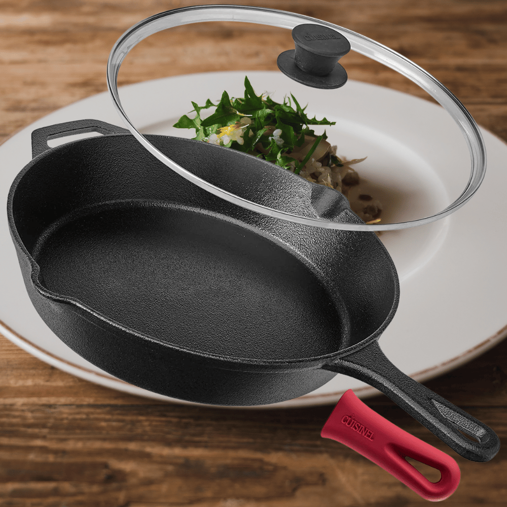 The Cuisinel Cast Iron Skillet is the perfect tool for searing fish. The smooth finish ensures even heat distribution, allowing you to get that perfect sear on your fish. The skillet also has excellent heat retention, so your fish will stay warm and juicy. Plus, the included silicone hot handle holder and tempered glass lid make it easier to handle and monitor the cooking process.