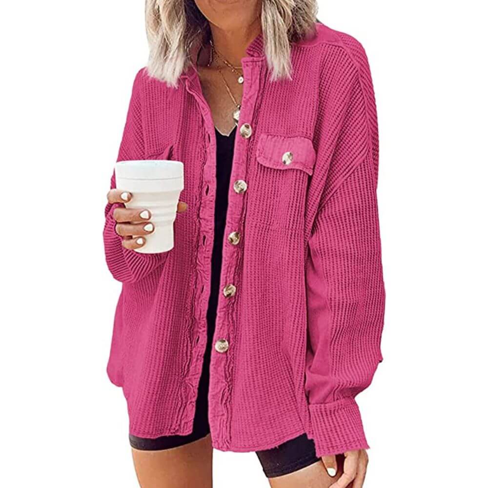 The Yanekop Womens Waffle Knit Shacket is a must have for any fashionista! This stylish and comfortable shacket is made of skin-friendly fabric and is perfect for windy and cold days.