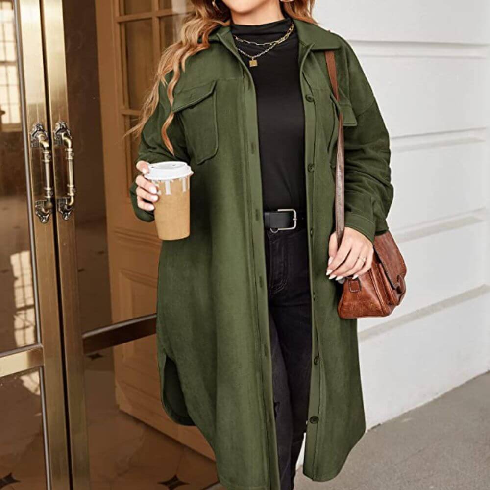 This stylish womens plus size shacket is perfect for the fall, winter and spring seasons. It’s warm enough to keep you comfortable on cool days and stylish enough to wear to work or on a casual weekend.