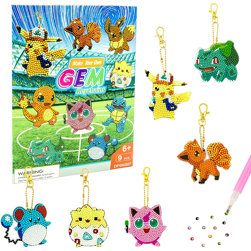 The DIY Pokémon Gem Keychains Kit is the perfect gift for your little girl who loves Pokémon. It's a fun and creative way to show her how much you care. Your little girl will have a blast creating her own gem keychains with this kit. It comes with 9 unfinished diamond keychains, 2 diamond painting styluses, 2 trays, 1 wax rectangle, and over 1000 colorful gems.