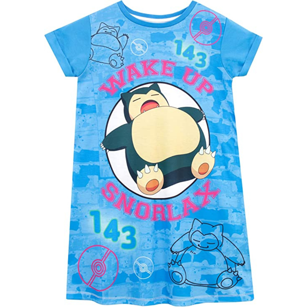 Bring out the inner Pokémon Trainer in your daughter with this cool Pokémon Girls’ Glow in the Dark Snorlax Nightdress! Featuring the infamous Snorlax on a light blue background accented with outlined prints of Snorlax, Pokéballs, and the number 143, which is Snorlax's number in the Pokédex. These cool PJs also feature the slogan 'Wake Up Snorlax' in a lovely contrasting pink text. These pajamas are super cozy, too! Your daughter will love wearing this fun nightdress and showing off her Pokémon pride.