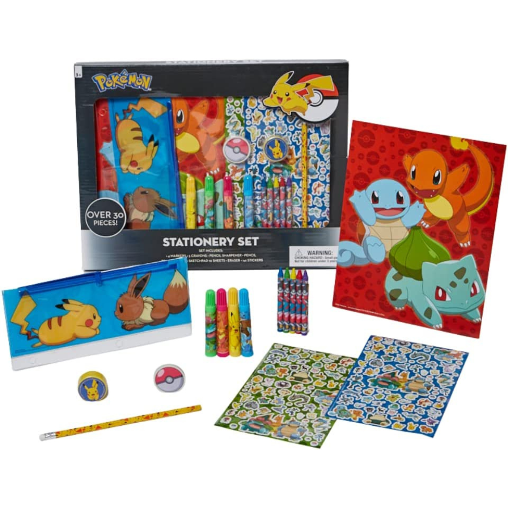 The perfect gift for Pokémon admirers, this 30-piece Pokémon coloring art and sticker set is sure to be a hit! With markers, crayons, a sketchpad, pencil pouch, and 2 sticker sheets, this set has everything your kids need to express their creativity.