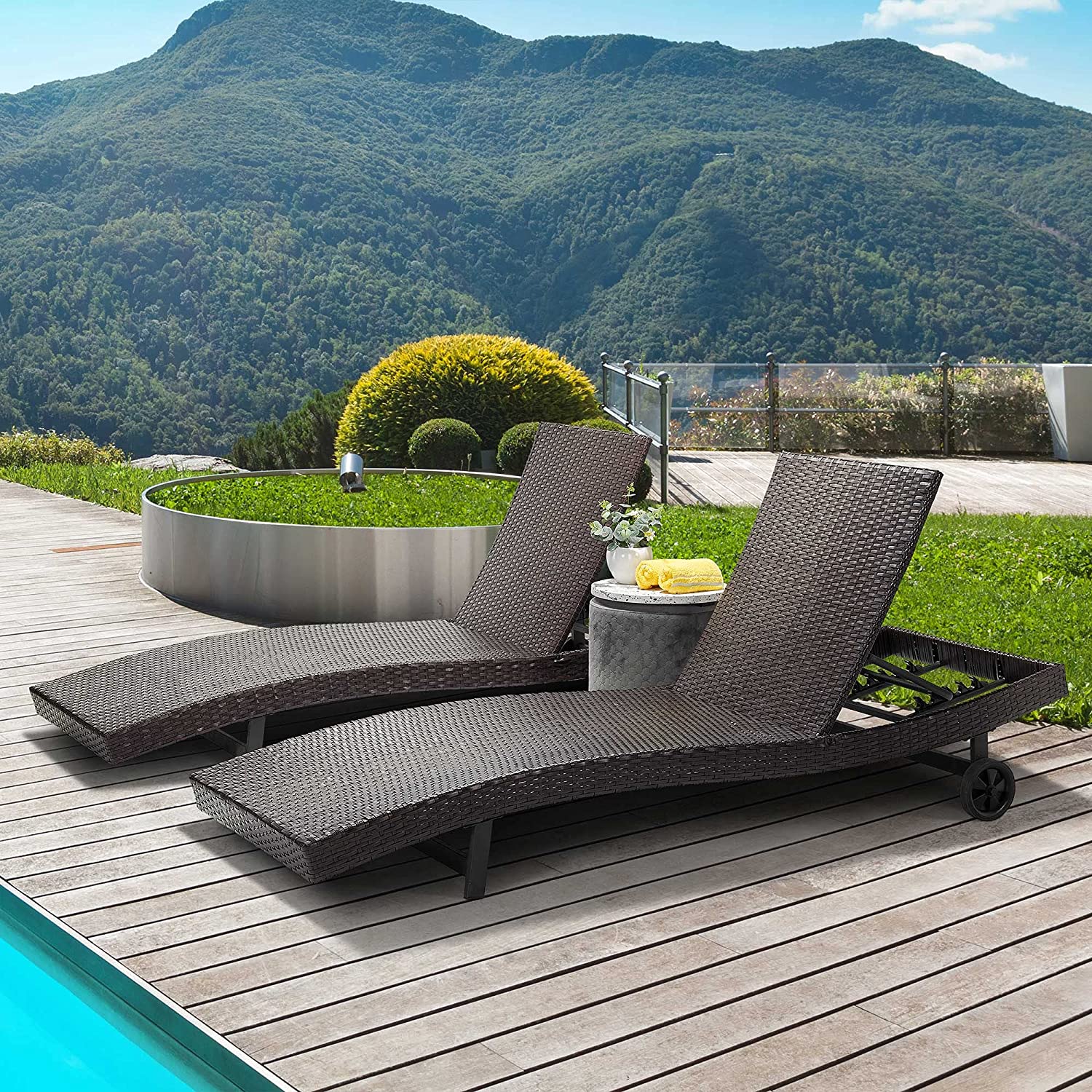 The Laurel Canyon Chaise Lounge Sets are perfect for outdoor entertaining. With their high-quality Synthetic resin wicker and durable steel frame, they are sure to last season after season. They are also UV and fade resistant, making them perfect for use on the patio, beach, or poolside. Plus, they come with a side table for easily storing drinks and snacks. They are also lightweight and easy to move with their two built-in wheels.