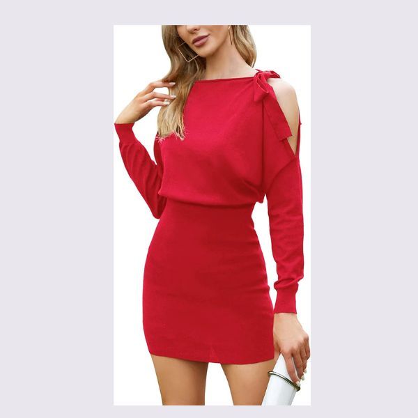 The dress is designed to flatter your figure, and the long sleeves provide extra coverage and warmth. With its eye-catching red color and elegant design, this dress is sure to make you look your best at any holiday party.