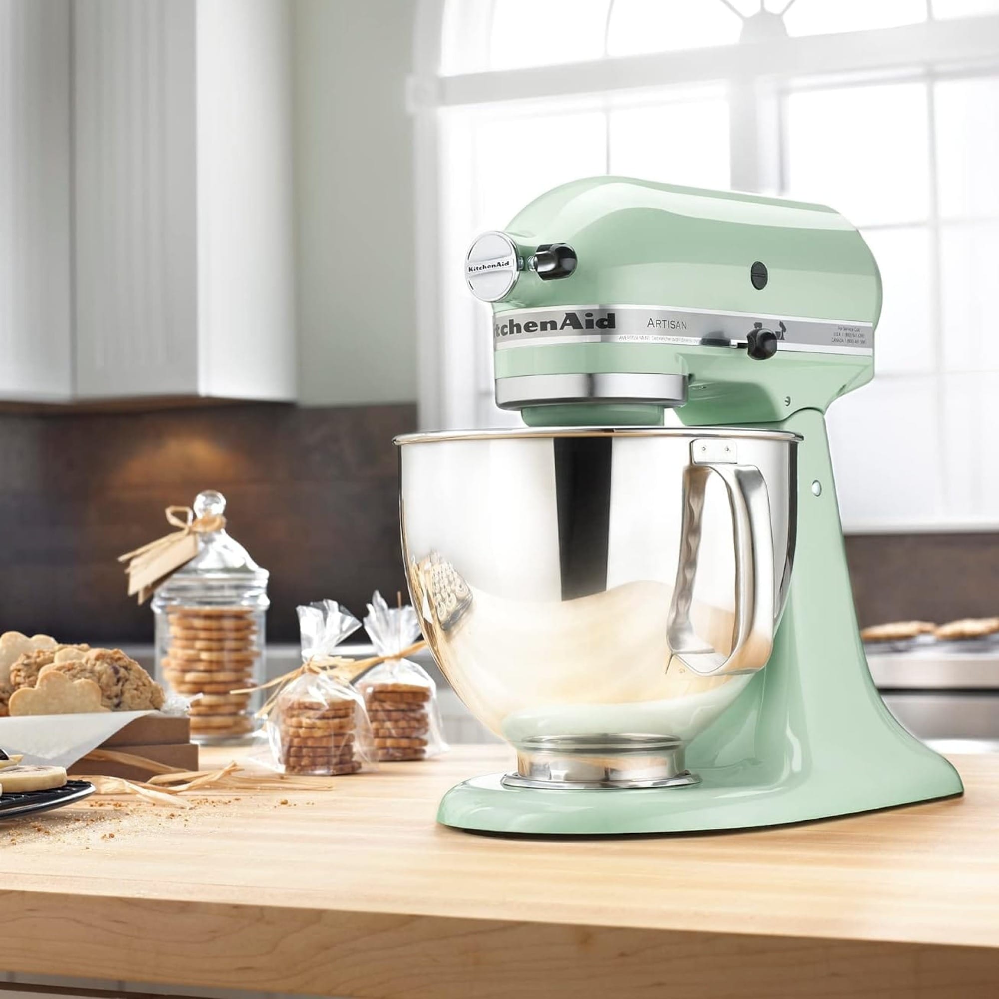 The KitchenAid Artisan Stand Mixer is a versatile appliance with 10 speeds for easy ingredient incorporation. It comes in over 20 colors, like jadeite green, orange, Kyoto, etc., to match your style and personality. This mixer is a must-have for any baking enthusiast or home cook.