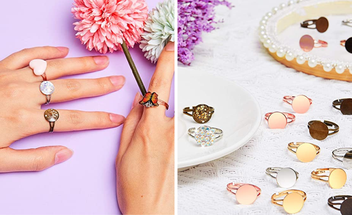 Whether you're looking to craft customized enamel charms, photo jewelry, or resin crafts, these adjustable flat rings are a great option! Get creative with friends who love DIY crafting and turn them into personalized finger metal rings. A perfect and elegant gift for those special people in your life - family members, friends, and more! Don't wait any longer to bring home these Amazon's Choice blanks! The DIY Adjustable Blank Ring Set is here to complete your jewelry making projects. Pick up yours today!