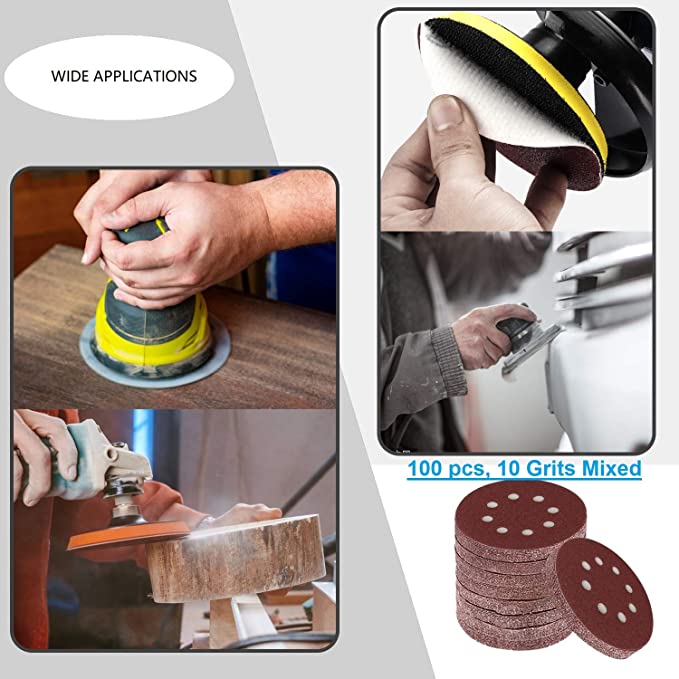 Toowood 100 Pieces 5 Inch with 8 Holes Dustless Hook-and-Loop Circular Sanding Discs Sandpaper Assorted from 60 to 600 Grits is the perfect choice for all your sanding needs!