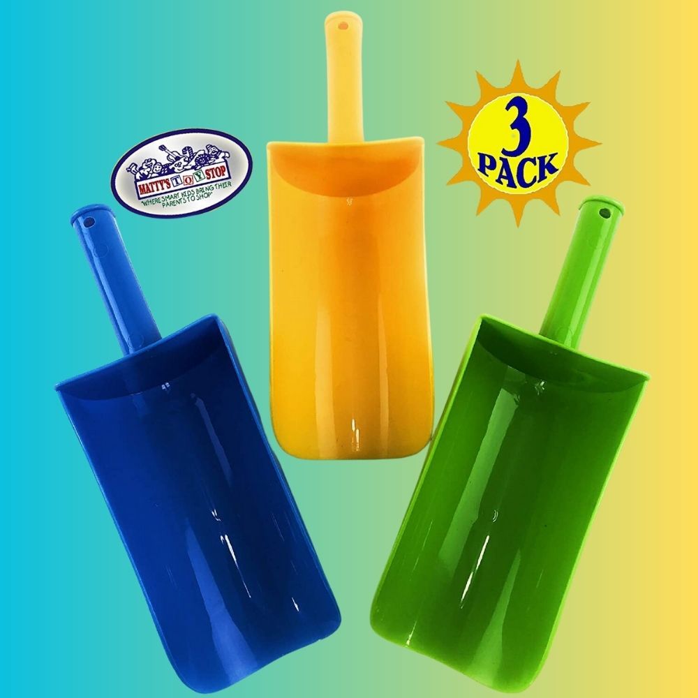 Matty's Toy Stop Sand Scoop Shovel Set is perfect for any beach, backyard, or sandbox adventure! These colorful plastic sand shovels are great for ages 2 and up and come in blue, yellow, and green.