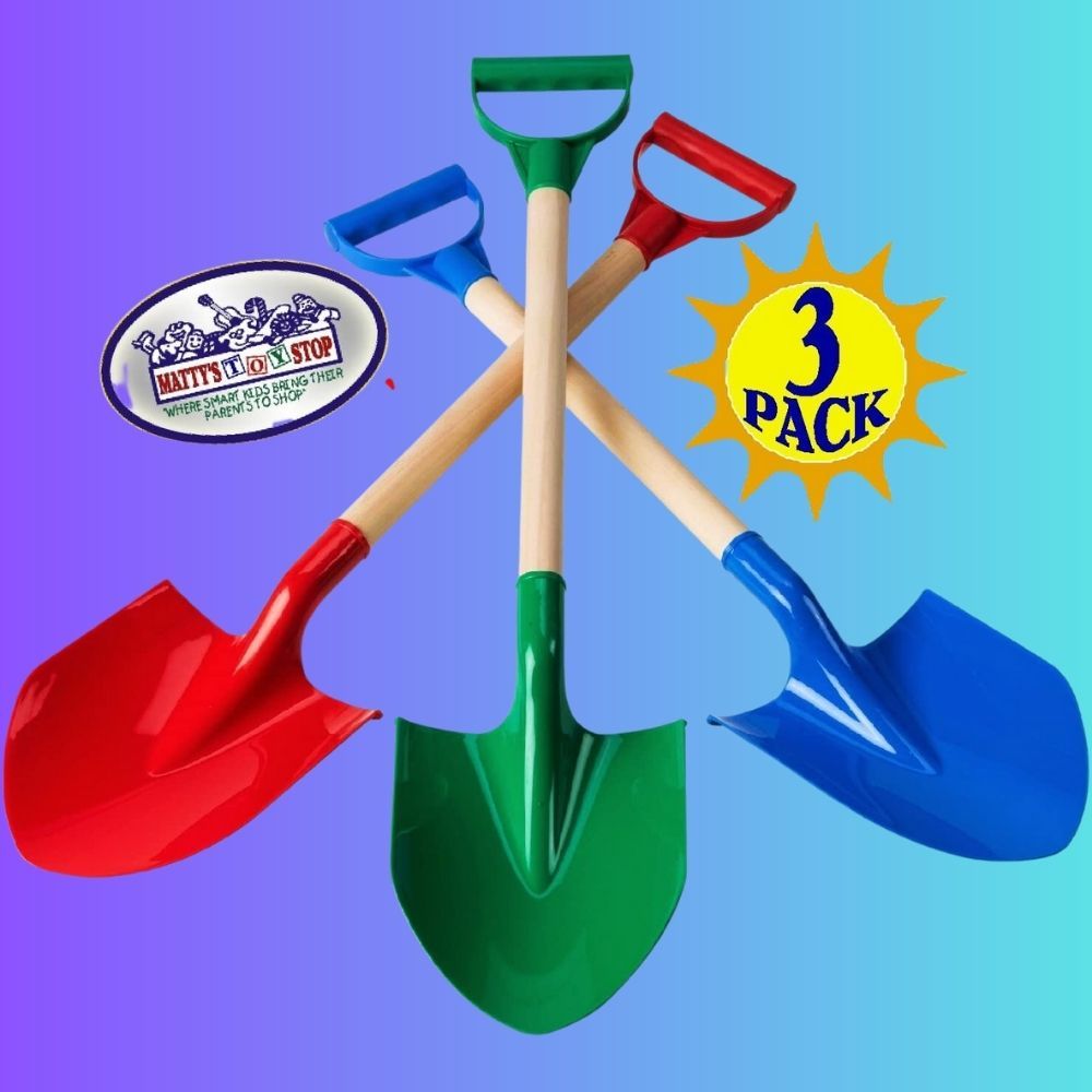 Matty's Toy Stop Heavy Duty Kids Sand Shovels are the perfect solution for your outdoor fun! This set of three shovels come in red, blue, and green colors and are ideal for any beach, park, or backyard playtime.