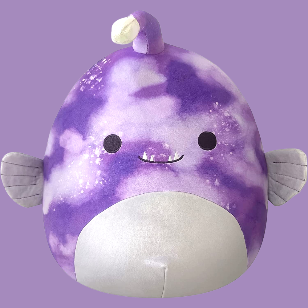 Squishmallows fans, meet Easton the Anglerfish! The 14-inch, ultra-squeezable, large purple plush is handcrafted with luxurious and soft materials. Plus, he makes a perfect cuddle companion for people of all ages. With his unique personality and adorable look, Easton will quickly become one of your favorite Squishmallows! Perfect for any sea life lover or collector, Easton makes for the perfect gift for any special occasion. With such cuteness and cuddliness radiating from him, it's sure to be a hit, so bring home Easton the Anglerfish Squishmallow today for a pal to squish and love!