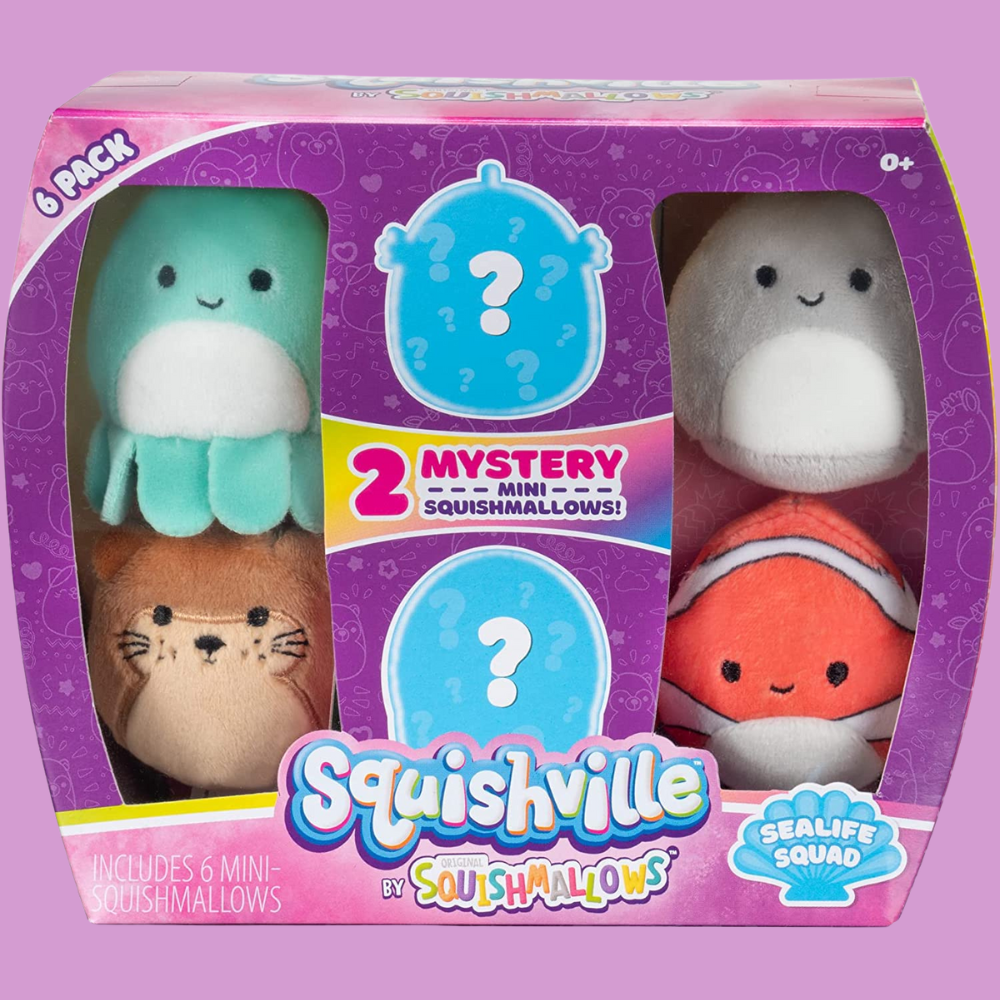 The Squishville Sealife Squad Squishmallow 6-Pack is the perfect way to add some sea life fun to your home! Prepare to embark on a squishy adventure with the Sealife Squad Squishmallow 6-Pack! From adorable characters and designs, to their ultra-soft marshmallowy filling that your child will adore - these mini Squishmallows are perfect for kids of all ages. And if they love collecting and playing with them, then get ready; with these beloved Squishmallow characters from Squishville the possibilities are limitless! So, don't wait any longer - order yours today and start the adventure at home!