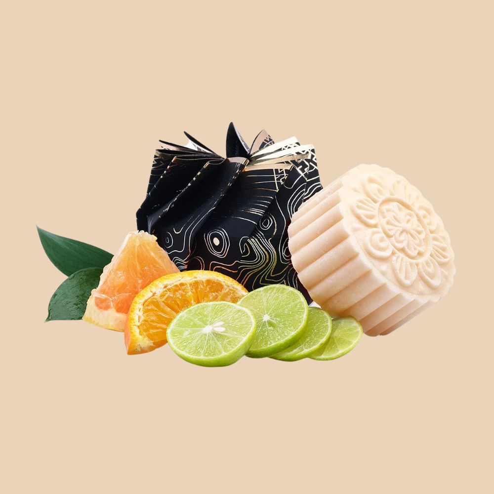 This sulfate-free shampoo bar is inspired by fruits from the baskets of the Red Yao fruit stands and is infused with natural essential oils like grapefruit, orange, lemon, mandarin, peach, and vanilla.