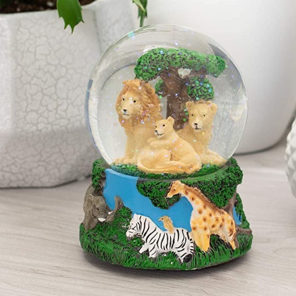 The Elanze Designs Lions Zebras Elephants and Giraffes Musical Snow Globe is a beautiful piece of art that is sure to bring a smile to any endangered species or wild life lover's face.