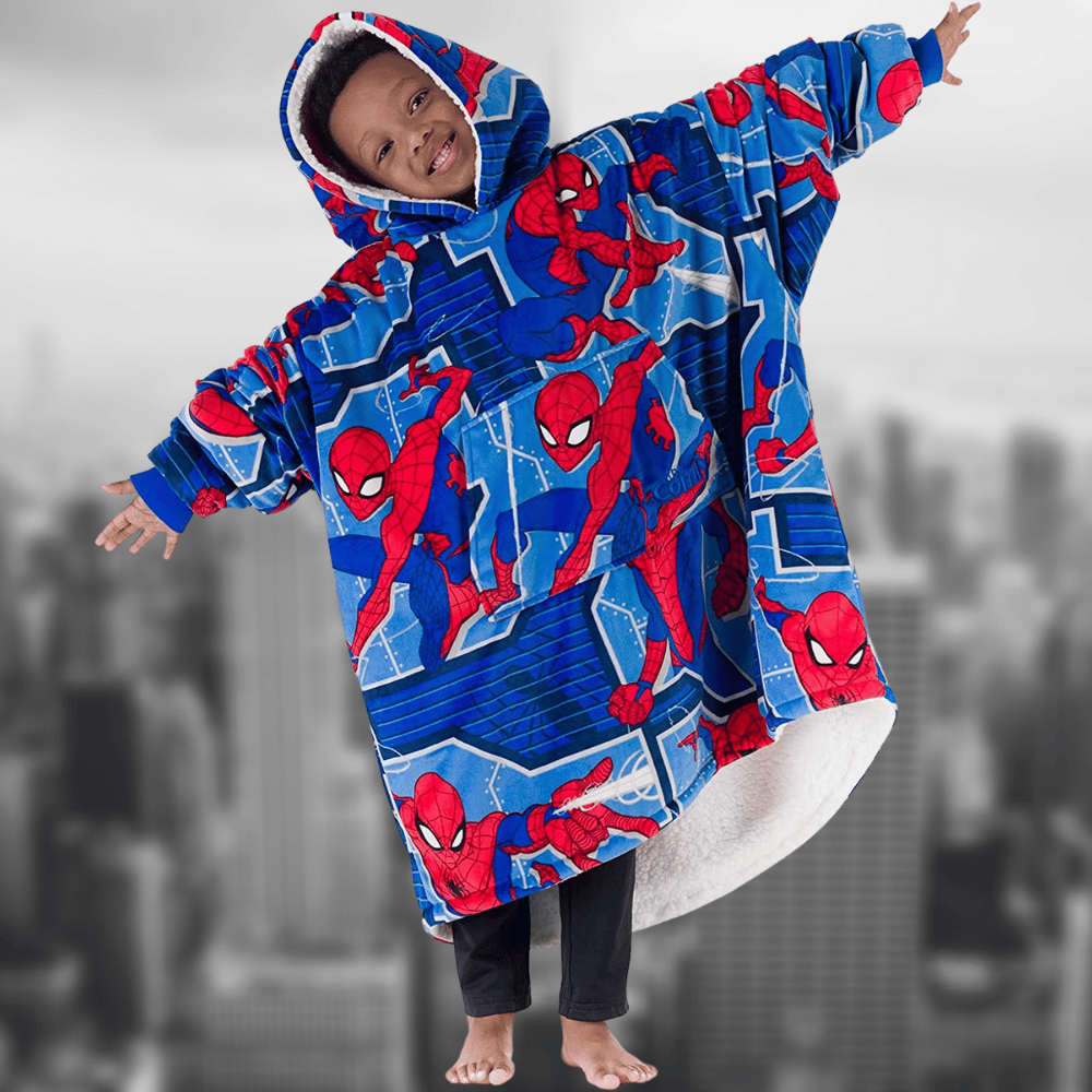 We love The Comfy Spiderman Blanket because it's made of 100% polyester and is designed for extreme comfort and luxury. It's double layered with luxurious fleece microfiber on the outside and premium fluffy sherpa on the inside. Plus, it has a huge plush hood, marsupial pocket, oversized sleeves, and a high-low hem, so you can stay cozy and warm while still being able to move freely.
