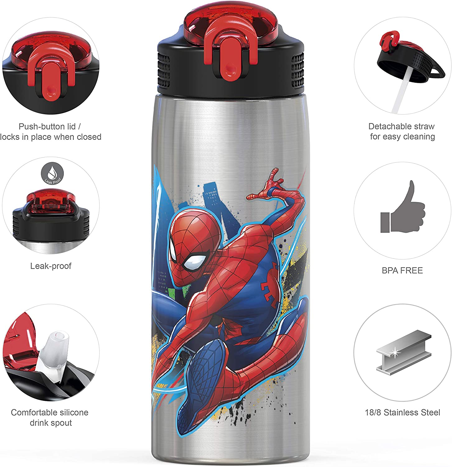 Are you looking for a water bottle that is both stylish and functional? Look no further than Zak Designs Spiderman Water Bottle! This water bottle is perfect for your kids and teens who love Spiderman. It is made of durable and BPA-free stainless steel, and its large capacity of 27 ounces makes it great for long days at school or on the go. Plus, it features a hygienic spout cover and built-in carrying loop for easy portability.