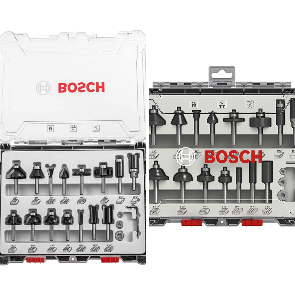 1.Bosch Professional 2607017473 15-Piece Set Router Bit Set for Wood for Router with 1/4 Inch Shank