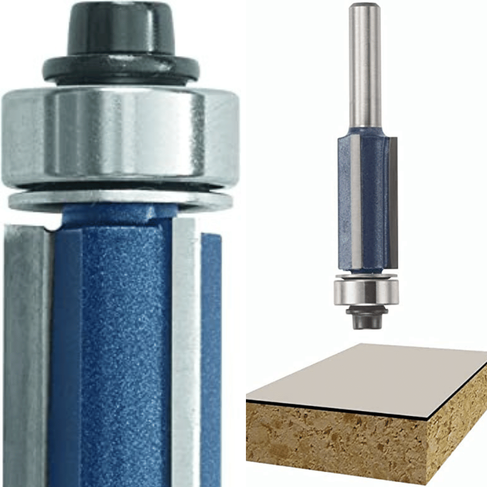 Bosch 85216M 1/2-Inch Diameter 1-Inch Cut Triple Flute Laminate Flush Trim Router Bit 1/4-Inch Shank with Ball Bearing is a must have for all DIYers and hobbyists alike! This carbide-tipped, triple flute bit provides chatter-free production trimming and an extra smooth, flush trim cut. The compact ball-bearing assembly is equipped with a glue shield, ensuring a clean and safe cut.