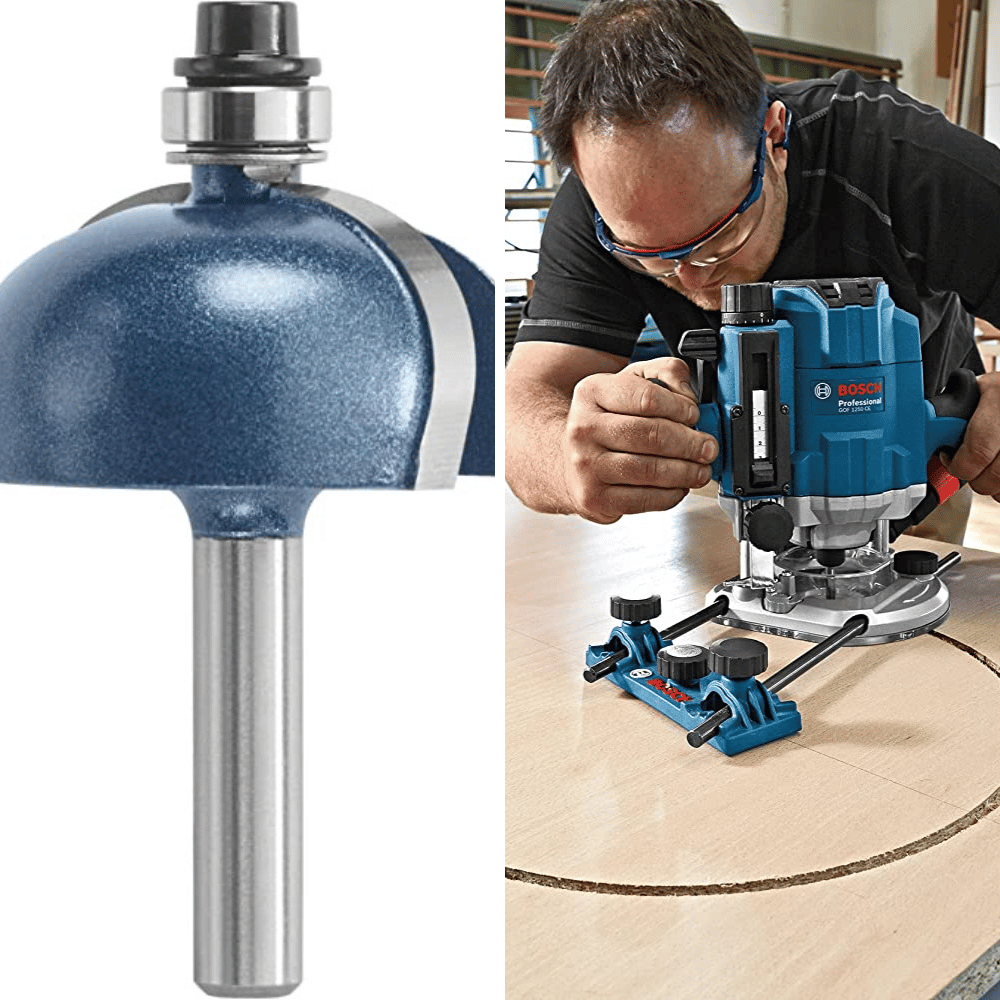For any surface material, including wood, MDF, and plastic, the Bosch 85207MC 11/16-Inch Cut 1/4-Inch Shank with Ball Bearing Cove Router Bit is a must-have. This micrograin carbide tip bit delivers long life and accuracy with its non-marring ball-bearing guides.