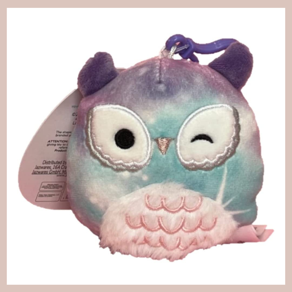 Squishmallow Solina Owl Keychain is part of the ever-growing Squishmallows squad! With its bright colors, sweet facial expressions and soft stuffing, it's sure to bring smiles to everyone's faces. Whether you're a Squishmallows fan or just looking for a cute and cuddly companion, this collectible plush is perfect for Squishmallows fans of all ages. Get your own Solina Owl Keychain today!
