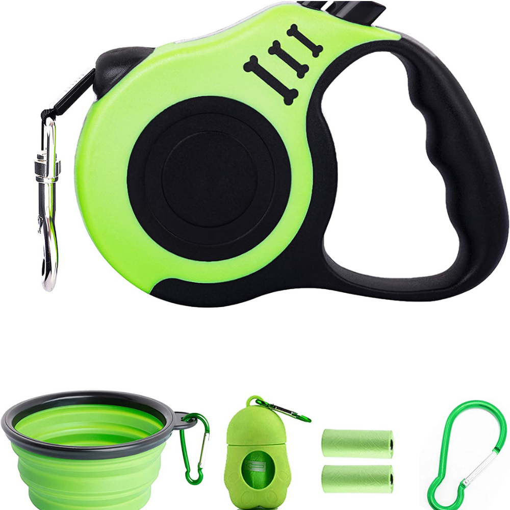 PETIMP Retractable Dog Leash is the perfect leash for pet owners who want convenience and ease of use. It comes with a 16ft / 5m leash, a bowl, a dispenser, two rolls of waste bags, and a buckle, making it the perfect combo for people who are always on the go. The lightweight yet sturdy design makes it easy to hold for long periods of time without fatigue, and the ergonomic non-slip handle ensures a secure grip. Plus, it has two adjacent buttons for easy one-handed locking and unlocking.