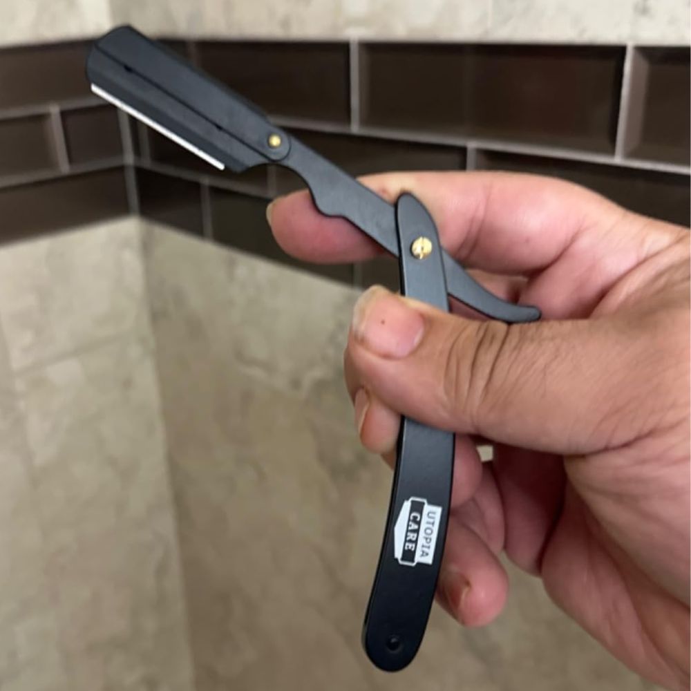 Utopia Care Straight Edge Razor is the #1 bestseller in Men's straight shaving razors and comes in several color options. It's ideal for use at barbershops or at home and should be used with gentle strokes and steady motion for a clean shave.