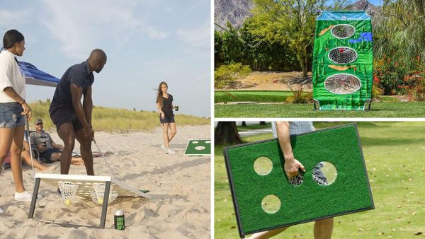 "Step aside, beer pong! There's a new party game in town and it involves golf and cornhole. It's a hole-in-one for backyard fun.