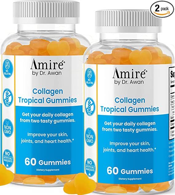Tired of feeling beaten down by the aging process? Rejuvenate with Amire by Dr. Awan Tropical Collagen Gummies! These delicious gummies are packed with essential Collagen to help reduce fatigue, improve joint health, and revitalize your body from the inside out. Made in the USA and easy to chew, enjoy 2 gummies a day for a boost of tropical flavor! Not only do these gummies help you look better, but they also make you feel younger too. By boosting overall skin health, promoting stronger bones and tendons, and improving gut health, Amire helps restore youthful energy back into your life.