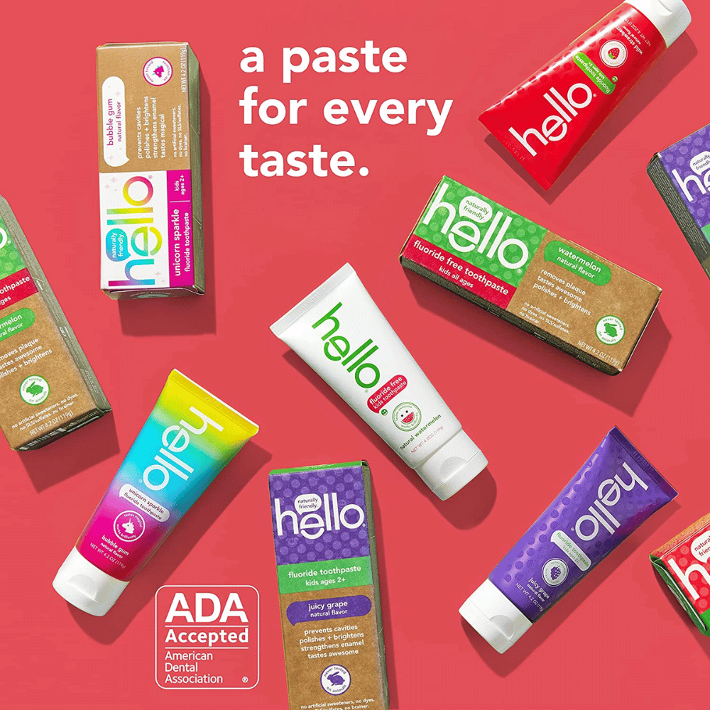 Say hello to naturally friendly strawberry toothpaste! hello, Natural Wild Strawberry Flavor Fluoride Kids Toothpaste is specifically designed for kids with braces. It polishes and brightens, prevents cavities, and tastes awesome.