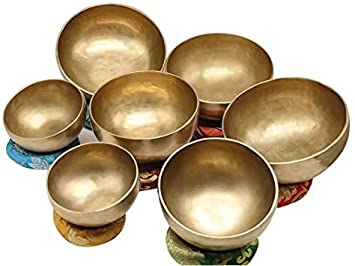 The KHUSI INC - Singing Bowl set of 7,Antique~ Hand hammered Seven chakra Singing Bowls is ideal for yoga training and prayer for peace of mind. Its pure sonic waves and healing properties will promote complete relaxation, relief from pain and depression. It's been proven to be beneficial for people suffering from various types of diseases and gives an antique look that's even more precious.
