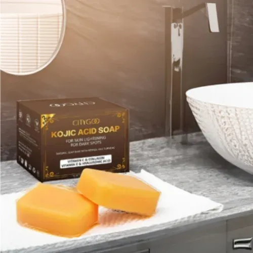 Kojic Acid Skin Lightening and Dark Spot Corrector soap is enriched with natural root extracts, vitamin C, retinol, turmeric, collagen, hyaluronic acid, vitamin E, nicotinamide, and other beneficial ingredients. This soap helps reduce uneven skin tone and hyperpigmentation, leaving your skin soft, smooth, and hydrated. It also helps to protect your skin from environmental damage and free radicals. So why wait? Try Kojic Acid Skin Lightening and Dark Spot Corrector soap today for a brighter, more even complexion.