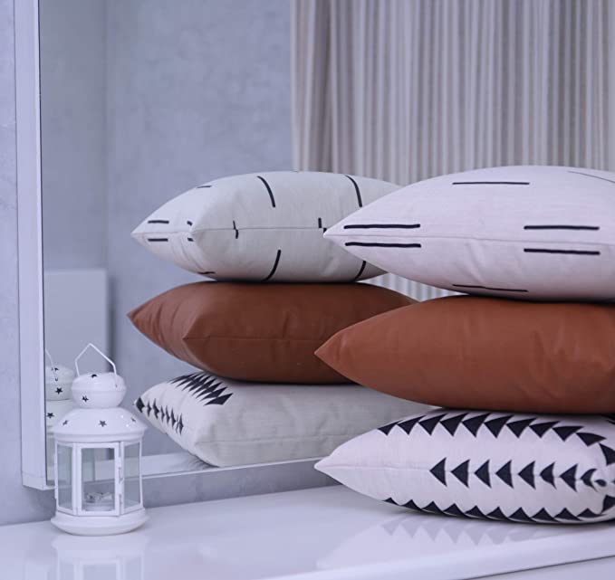 EFOLKI Boho Throw Pillow Covers are the perfect way to enjoy a stunning styled room without breaking the bank. These slipcovers come in a variety of African Bogolan theme designs, white Arrowhead MudCloth inspired prints, and geometric Monochrome Zola tribal patterns. They are perfect for a bedroom, living room, study, balcony, single sofa, or hanging chair. Plus, these high-quality faux leather and cotton pillow covers are extremely durable and are sure to last for years to come.