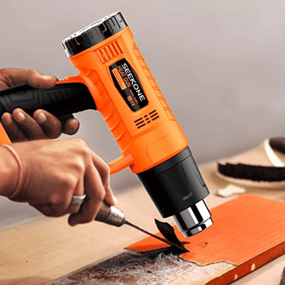 The SEEKONE Heat Gun 1800W is great for crafts, shrinking heat shrink tube, wrapping, heating PVC, electronics repairs, paint removal, loosening rusted bolts, and more.