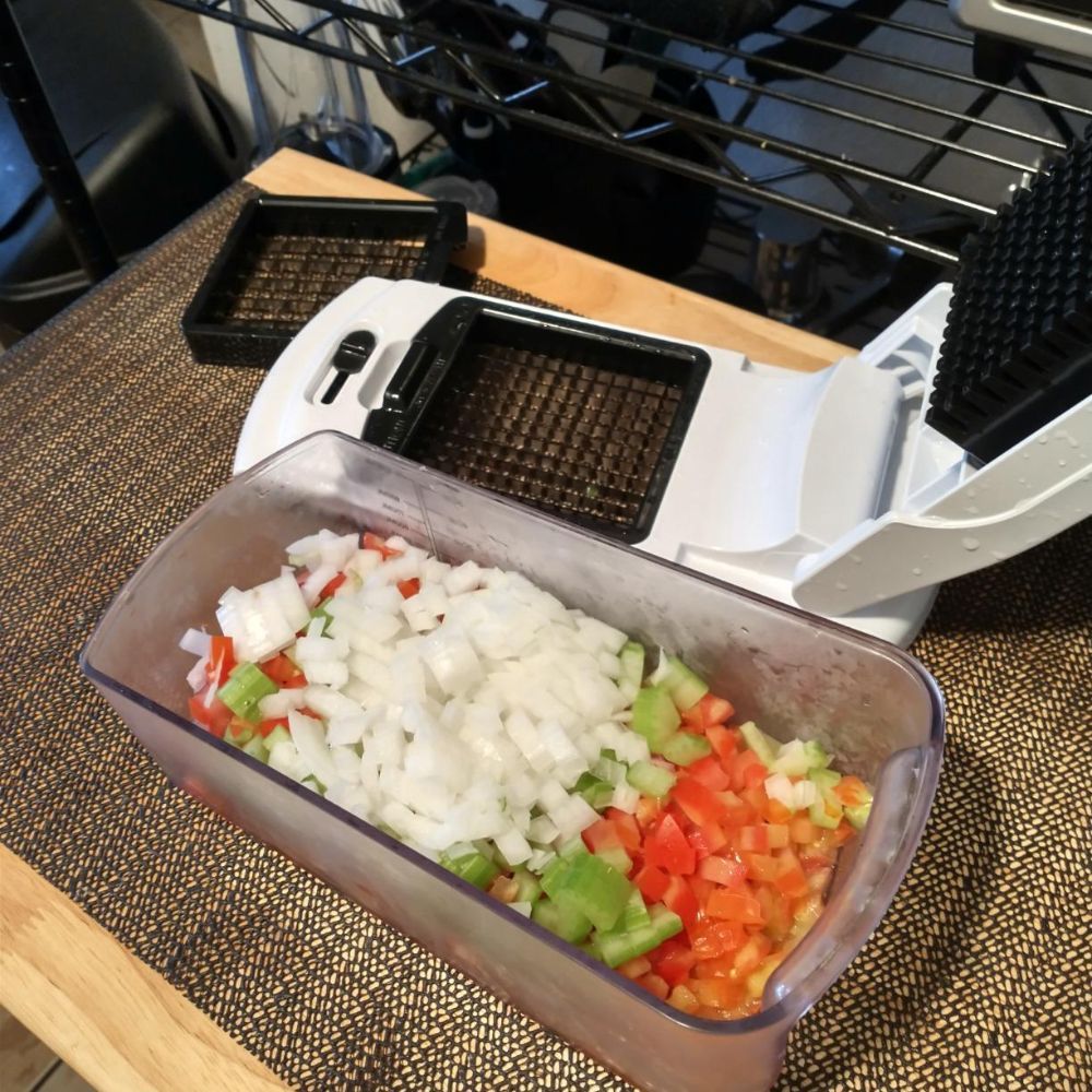 Plus, it comes with an organizer for the inserts, so you can keep everything organized and easily accessible. Get the Fullstar Vegetable Chopper today and make food preparation fast and easy! Get diced and sliced veggies in no time!