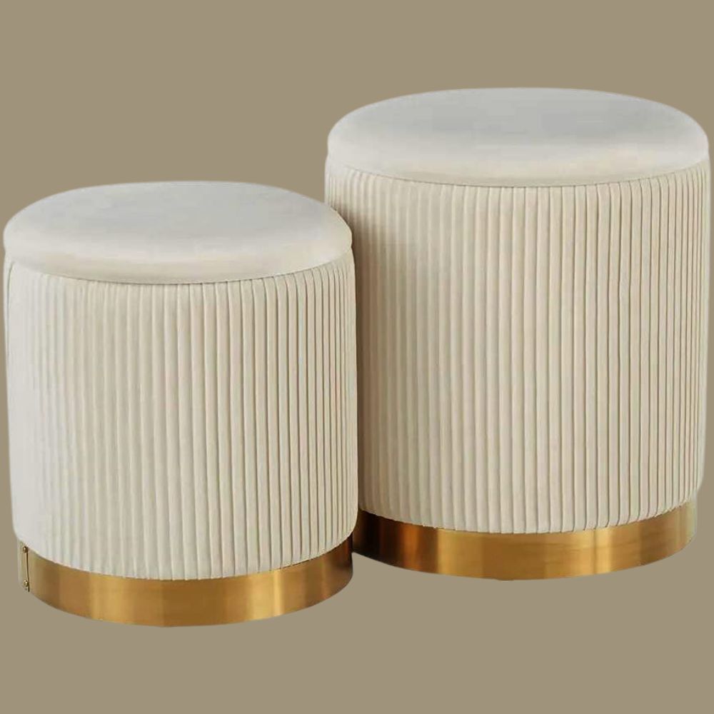 With beautiful details, quality stitching, and a gold accent around the bottom, these ottomans look great in any space. Plus, they have hidden storage so you can store away all your clutter.