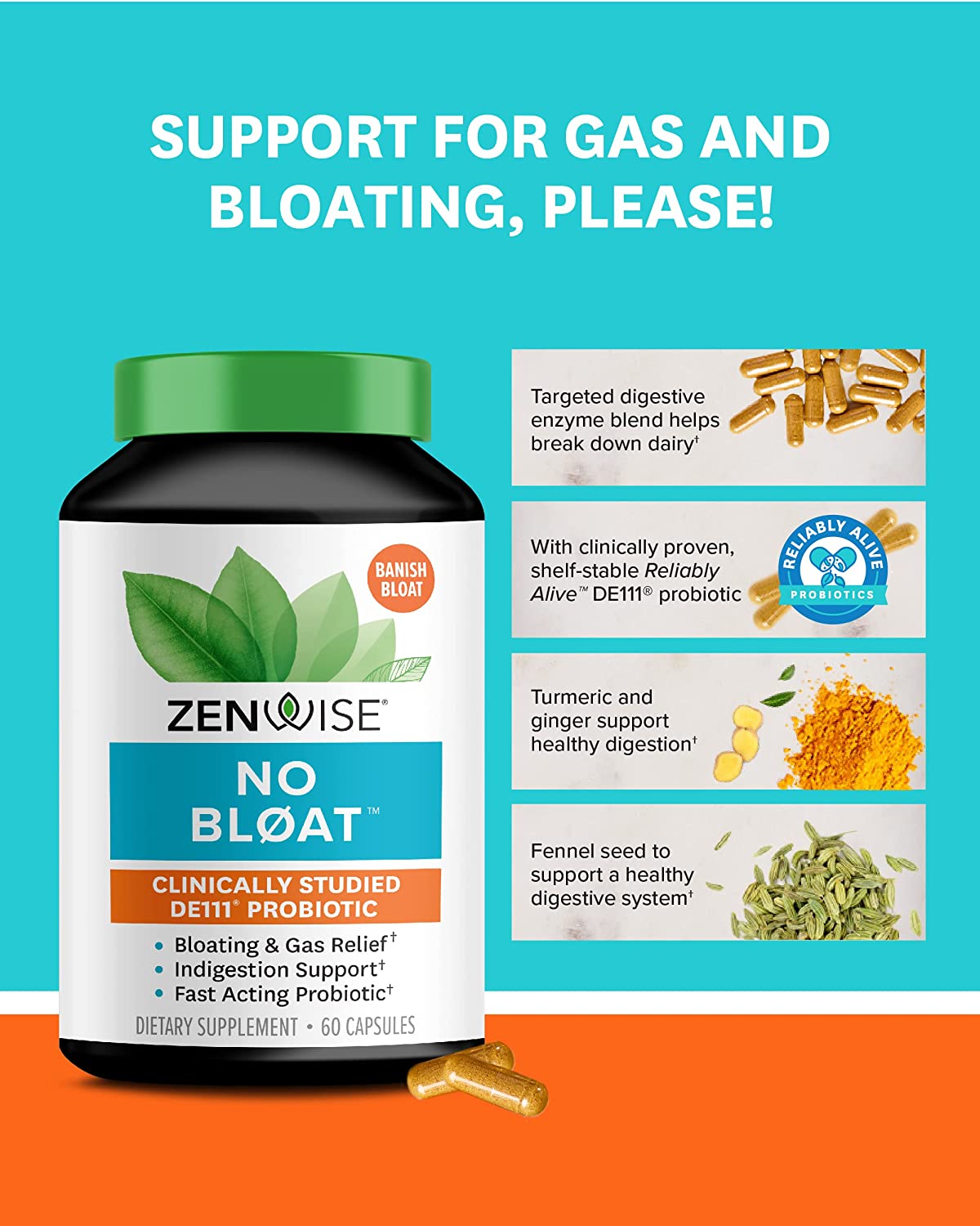 Zenwise No Bloat Supplement is a must-have for anyone looking for relief from gas and bloating. Their unique blend of BioCore Optimum Complete digestive enzymes, probiotics, and organic botanicals work together to break down lactose, help nutrient absorption and support the gas and bloating that can be at the root of your discomfort. Furthermore, its exclusive spore-forming probiotics are highly resistant to any environmental conditions and require no refrigeration whatsoever.