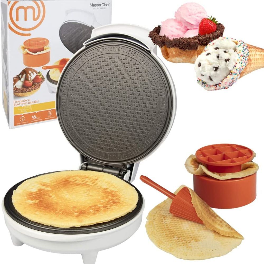 Make delicious homemade ice cream bowls and cones in minutes with the MasterChef Waffle Cone and Bowl Maker!