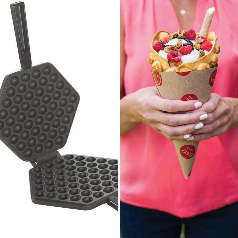 The Nordic Ware Egg Waffle Pan offers a unique twist on traditional waffle cones. Create delicious Chinese egg waffles or bubble waffles that can be eaten as is or wrapped into a cone shape for your favorite ice cream flavor.