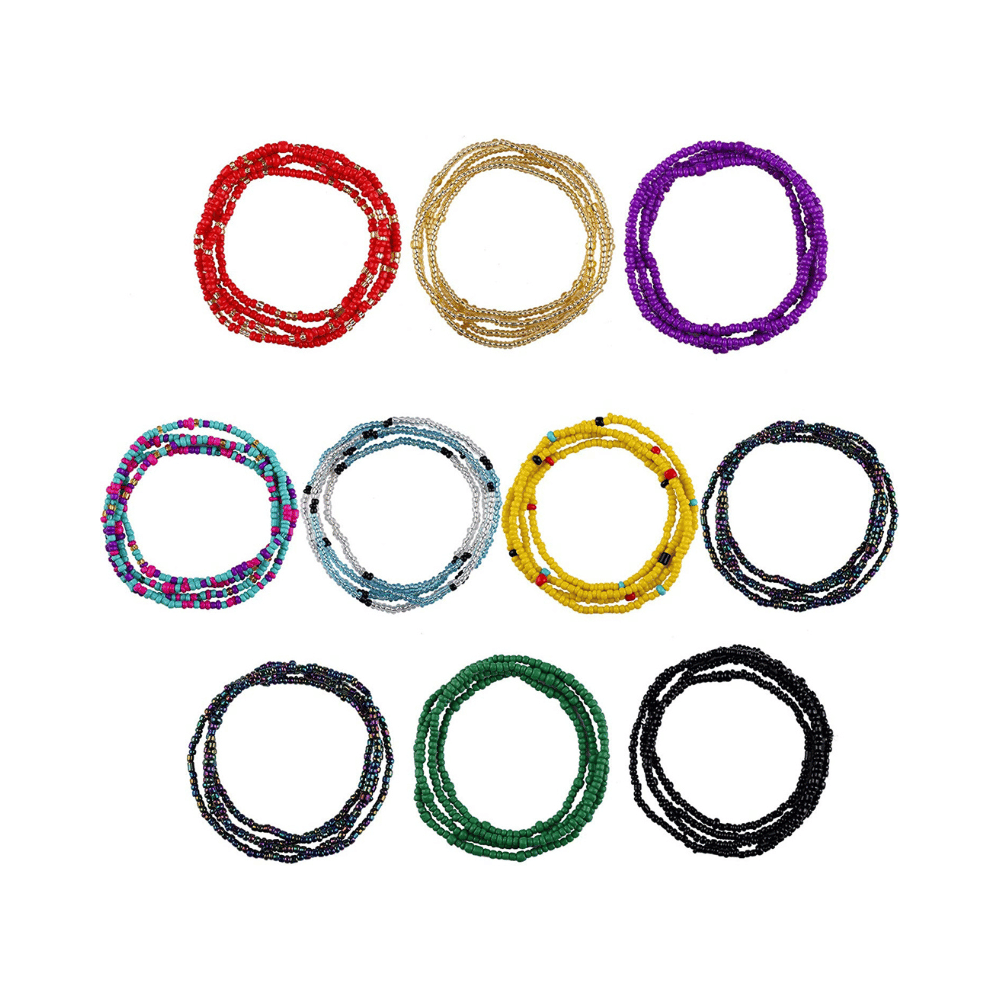 Waist beads have become the latest trend in fashion statements, and it's no surprise why! With a package of 10 colorful waist beads you'll find something to match with any outfit; be it a powerful Afrocentric statement or an elegant beach look.