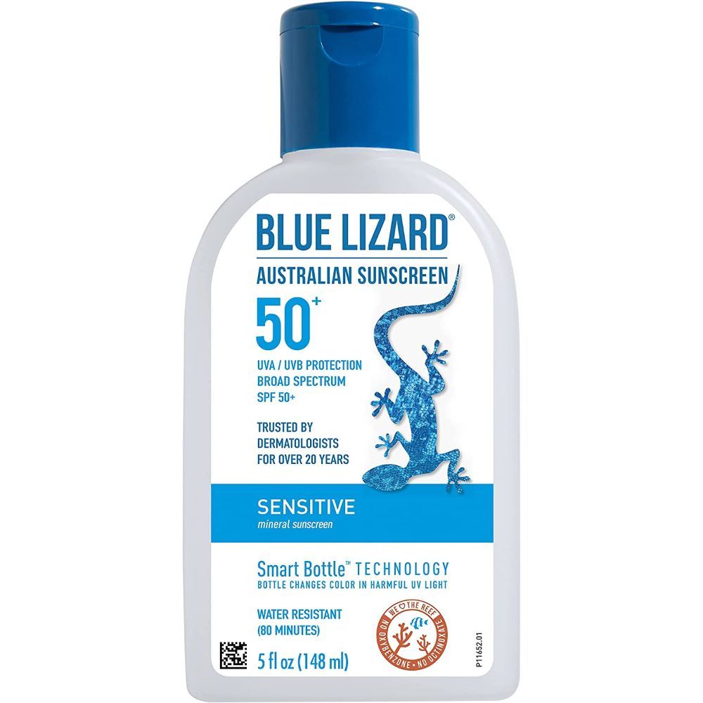 5. BLUE LIZARD Sensitive Mineral Sunscreen with Zinc Oxide, SPF 50+, Water Resistant, UVA/UVB Protection with Smart Bottle Technology - Fragrance Free