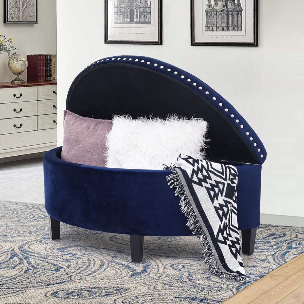 If you're looking for a stylish and functional storage solution for your home, you'll love the Joveco Half Moon Storage Ottoman. This elegant piece of furniture features a beautiful blue color and a half-moon shape that adds a touch of sophistication to any room.