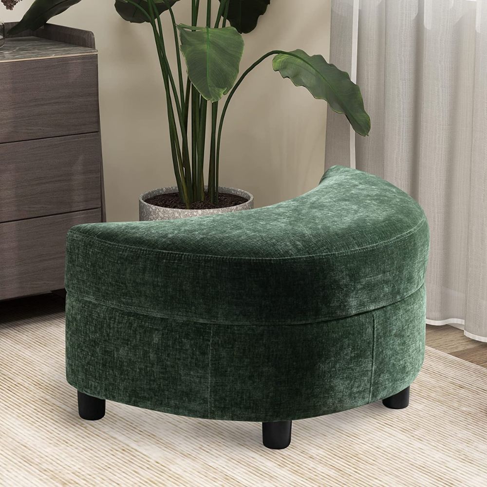 The Sulops Chenille Half Moon Ottoman is the perfect way to add style and function to your space. Featuring an eye-catching green color, this ottoman is upholstered in a comfortable chenille fabric and has a soft padded seat for extra comfort.