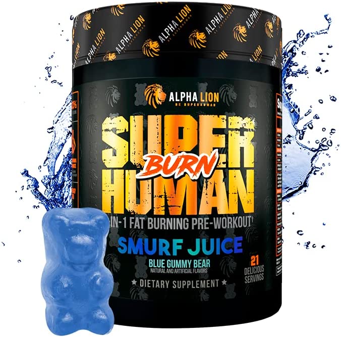 ALPHA LION Superhuman Burn 2-in-1 Metabolism Booster Pre Workout, Weight Loss Supplement, Appetite Suppressant, Fat Loss Support, Energy & Focus Powder (21 Servings, Blue Gummy Bear