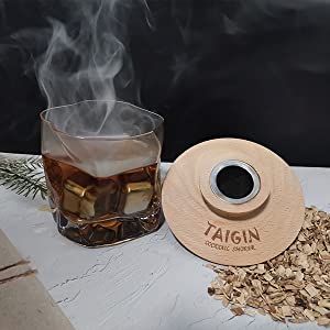 TAIGIN Cocktail smoking kit is the perfect way to add a unique smoky flavor to your favorite dishes and drinks. This exquisite design and delicate packaging, include a smoke infuser, a torch, a cleaning brush, a filter, and 4 different flavor wood smoker chips of apple, cherry, pecan, and oak without artificial fragrance ingredients. These chips are air-dried to a suitable humidity, and crushed into a suitable particle size for full combustion, which can guarantee the most original and pure smoky taste.