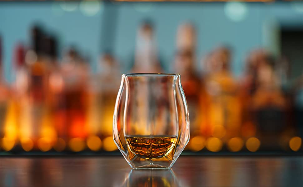 Savor your whisky like a true connoisseur with the ORIGINAL Double-Walled Whisky Glass. This award-winning, patented design was refined with master distiller Jim McEwan to reduce the ethanol burn from your whisky through specially developed inner protrusions. Its modern, lightweight design features a hand-blown double-walled borosilicate glass with a concave outer rim elegantly formed to fit the lower lip of the mouth.