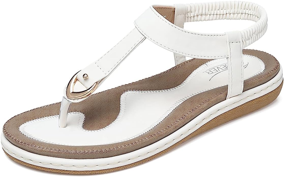The SHIBEVER Women's Bohemian Flat Sandal is perfect for adding casual and stylish flair to any outfit. These sandals feature a minimalist design with a comfortable elastic back strap for easy put on and take off. The lightweight and stability arch support is essential for women, ladies, junior, and teens.