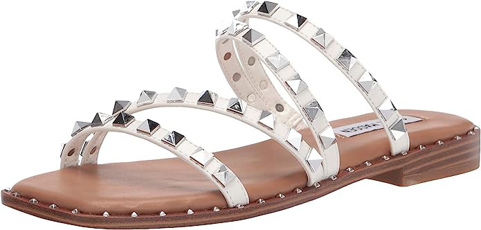 Are you ready to make a statement? The Steve Madden Women’s Skyler Flat Sandal is the perfect way to do just that. With an edgy design and pyramid stud detail, this sandal is sure to turn heads. Plus, the slip-on style and square open toe make it comfortable and easy to wear all day. You'll love the lightly padded footbed that provides extra comfort and support.