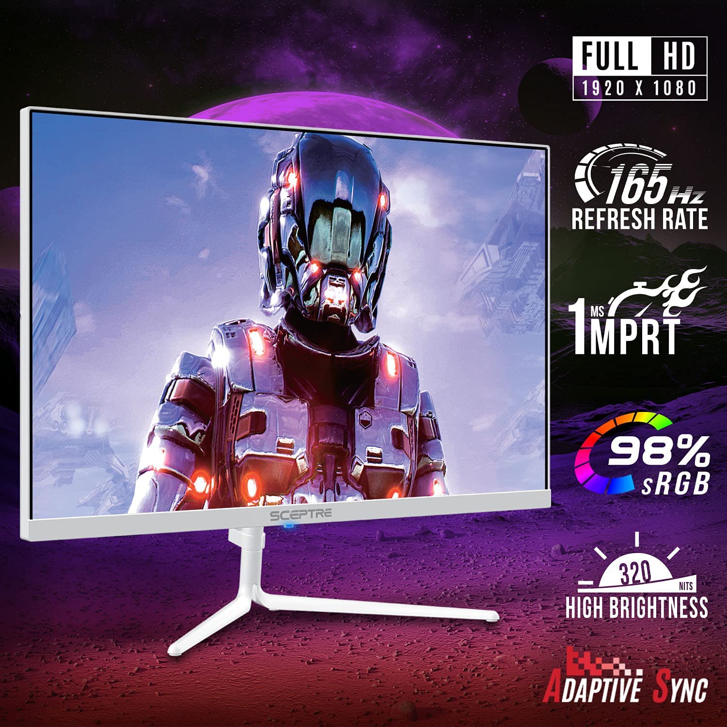 The Sceptre 24" Gaming Monitor is a great choice for gamers looking for a budget-friendly white gaming monitor. It features a 1ms response time, eliminating ghosting and piecing together precise imagery during action-packed scenes and gaming. Plus, the monitor has a 165Hz refresh rate, giving you an edge in performance as frames transition instantly. And, the Blue Light Shift feature reduces the monitor's blue light to protect you from eye fatigue, irritation, and strain.
