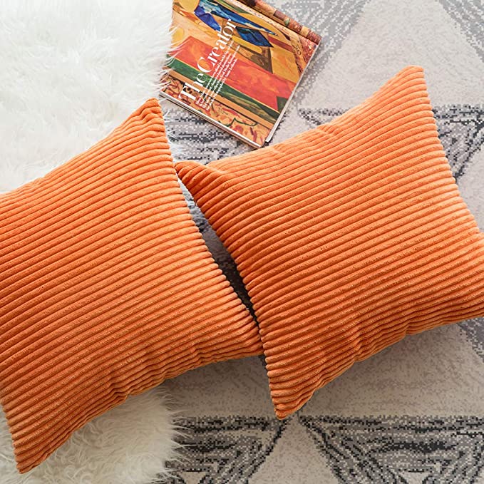 Miulee Pack of 2, Fall Corduroy Soft Soild Decorative Square Throw Pillow Covers Set Cushion Cases Pillowcases are perfect for just about any occasion. These pillow covers are super soft and comfortable, and are suitable for balconies, living rooms, bedrooms, parties, picnics, weddings, offices, cafes, and more.
