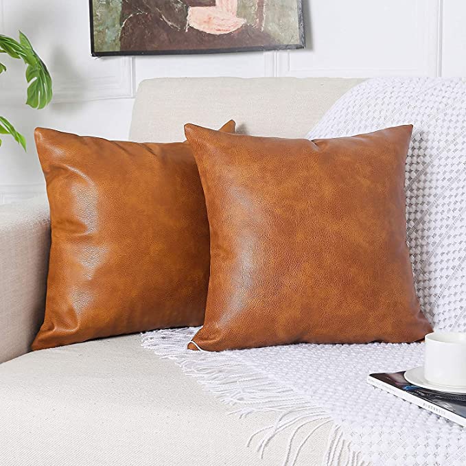 These luxury faux leather home throw pillow covers are easy to care for and can be wiped clean with a damp cloth. Plus, they are sold in packs of two so you can get matching pillow covers for your couch, bed, or chair.